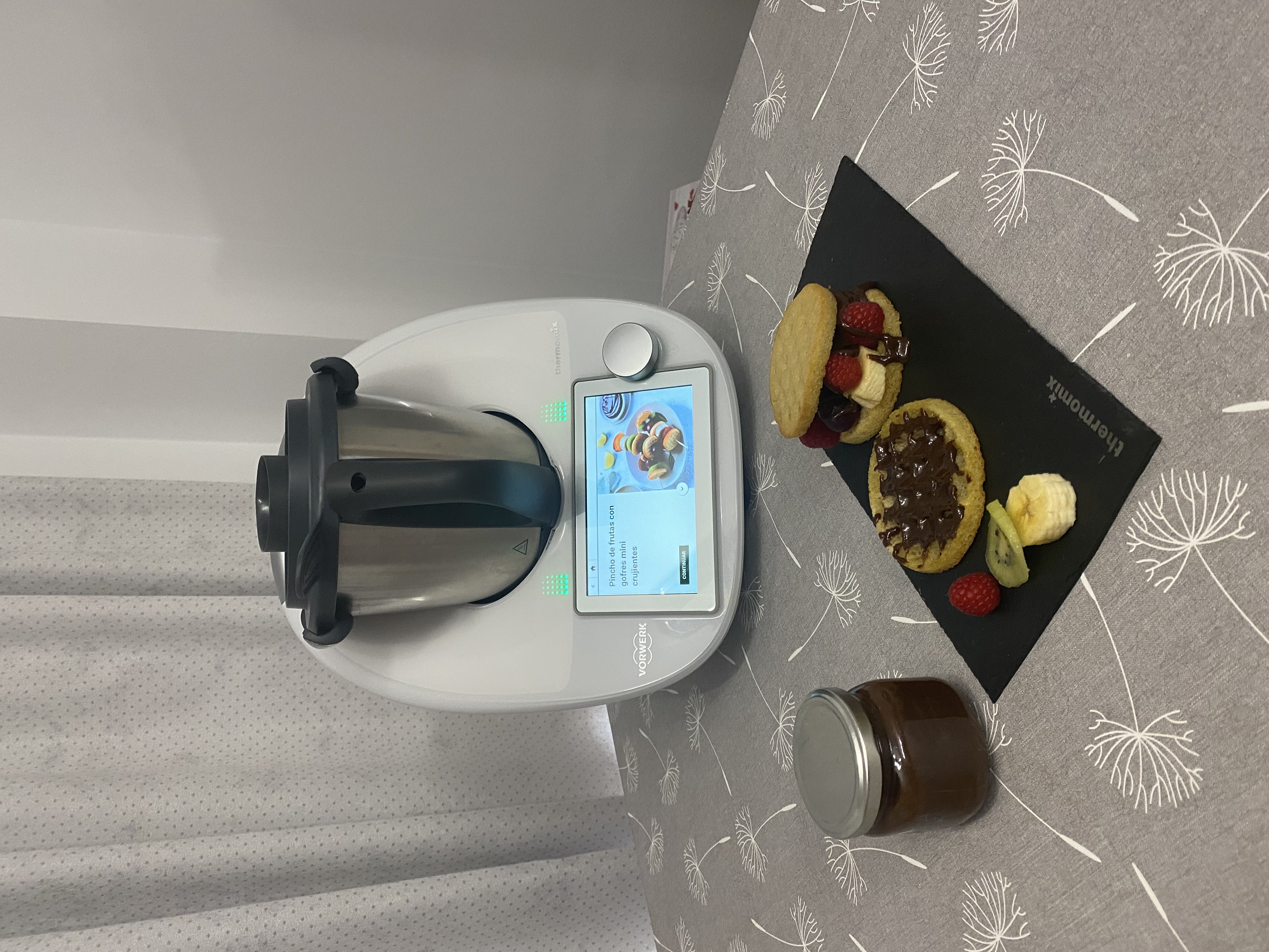 - Bienvenid@ a esta publicación de la colección ideas de cookidoo , en este caso he variado el tamaño de los gofres , los he rellenado de fruta y los he rociado con la salsa de chocolate y Dulce de leche .