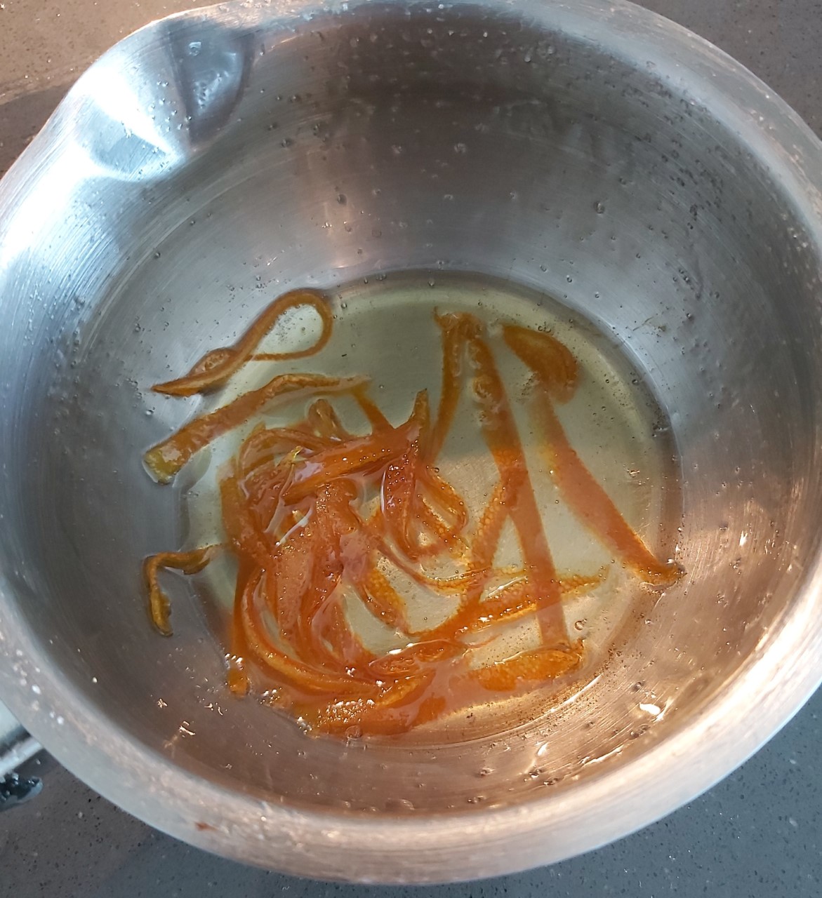 Piel de naranja en tiras confitadas