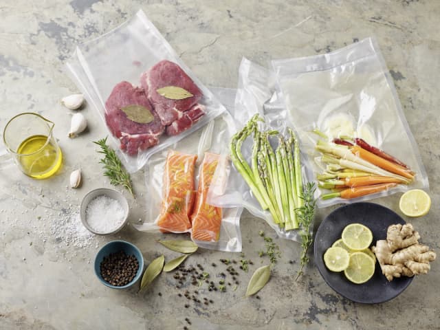 Este modo te permite cocinar los alimentos previamente envasados al vacío, como carnes, pescados, verduras y frutas a temperaturas controladas entre 40 y 85 °C durante un máximo de 12 horas para obtener unos resultados increíblemente tiernos y jugosos. La cocción al vacío conserva los nutrientes de los alimentos y realza sus sabores y aromas sin necesidad de añadir sal o especias en exceso. Saca al chef que llevas dentro e impresiona a tus invitados con el modo Al vacío. Para unos resultados dignos del mejor restaurante, te recomendamos el Accesorio cubrecuchillas pelador de Thermomix®.